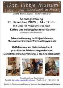 Unsere Mitglieder haben zahlreiche Utensilien aus allen Lebensbereichen zusammengetragen, um Geschichte erlebbar zu machen. Viele Gerätschaften und Werkzeuge, die im „lüttjen Museum“ ausgestellt sind, erinnern an das Arster Alltagsleben in früheren Zeiten.