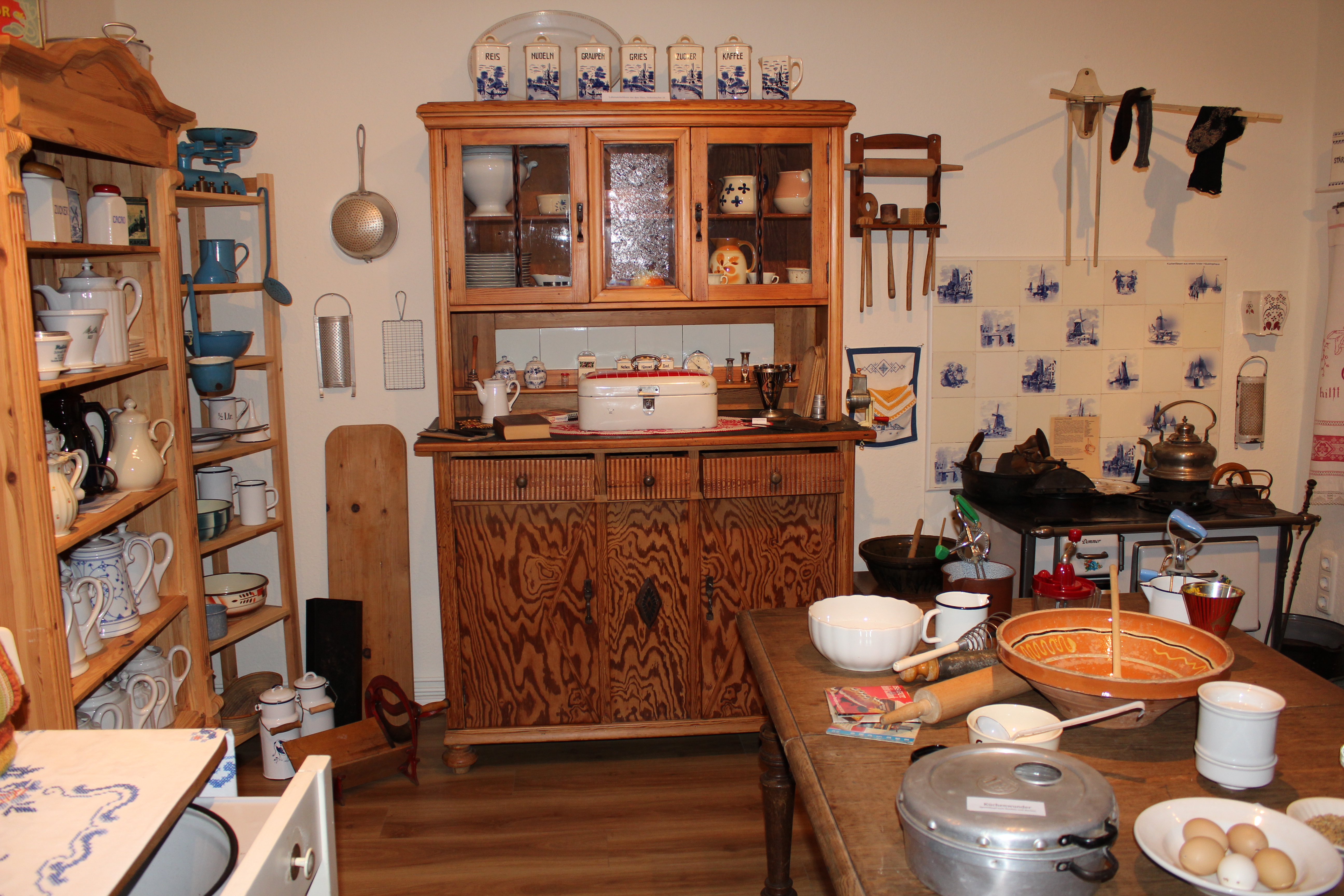 Der heute noch beheizbare Küchenherd wird des Öfteren genutzt. So werden an Aktionstagen mit einem alten Waffeleisen leckere Waffeln gebacken und Rohkaffee sowie Getreide mit dem gusseisernen Kaffeebrenner geröstet.